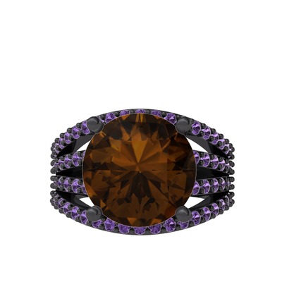 Dumanlı kuvars ve ametist 925 ayar siyah rodyum kaplama gümüş yüzük