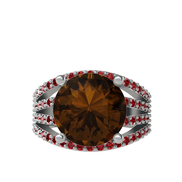 Dumanlı kuvars ve garnet 8 ayar beyaz altın yüzük