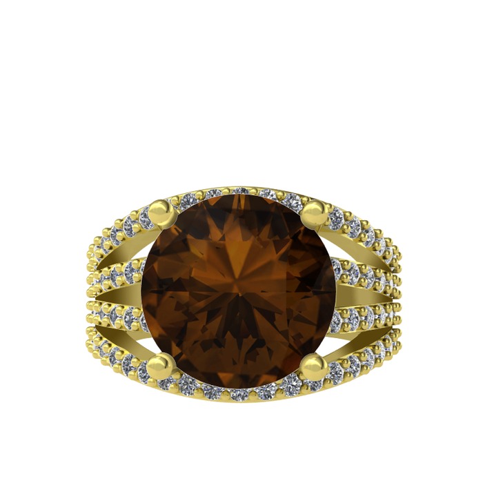 Dumanlı kuvars ve pırlanta 925 ayar altın kaplama gümüş yüzük (0.93 karat)