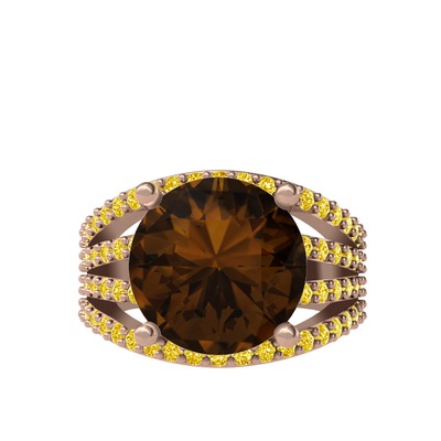 Dumanlı kuvars ve sitrin 925 ayar rose altın kaplama gümüş yüzük