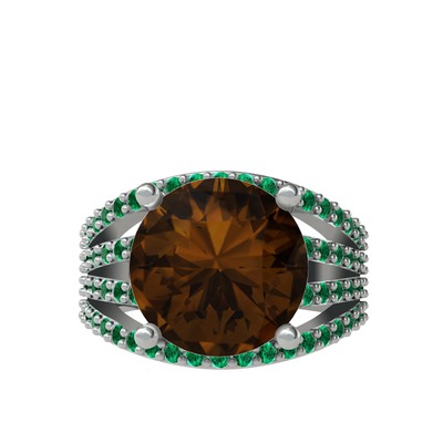 Dumanlı kuvars ve yeşil kuvars 14 ayar beyaz altın yüzük