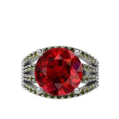 Garnet ve peridot 14 ayar beyaz altın yüzük