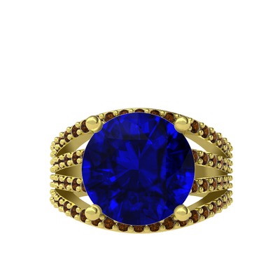 Lab safir ve dumanlı kuvars 14 ayar altın yüzük