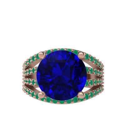 Lab safir ve kök zümrüt 18 ayar rose altın yüzük