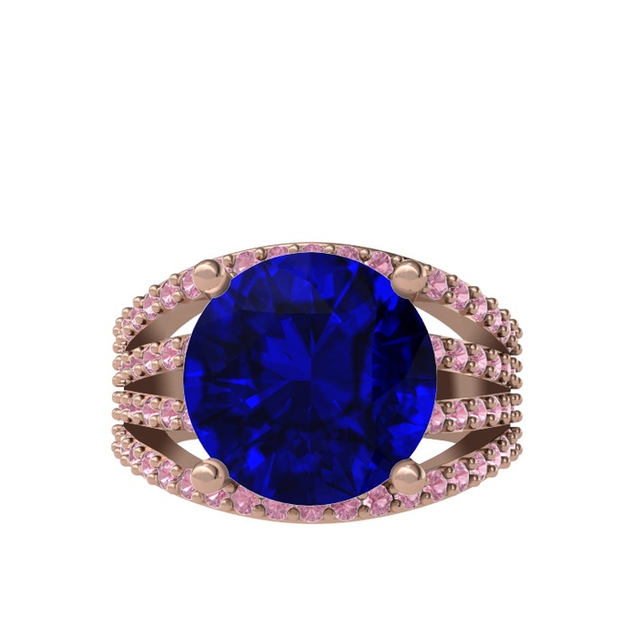 Lab safir ve pembe kuvars 14 ayar rose altın yüzük