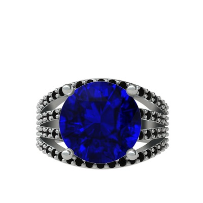 Lab safir ve siyah zirkon 8 ayar beyaz altın yüzük