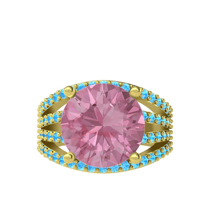 Pembe kuvars ve akuamarin 18 ayar altın yüzük