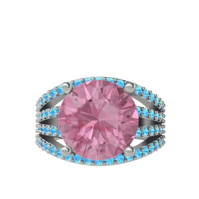 Pembe kuvars ve akuamarin 18 ayar beyaz altın yüzük
