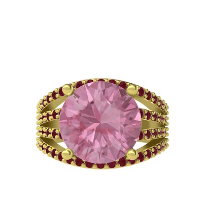Pembe kuvars ve kök yakut 8 ayar altın yüzük