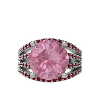 Pembe kuvars ve kök yakut 8 ayar beyaz altın yüzük