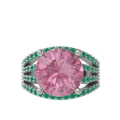Pembe kuvars ve kök zümrüt 14 ayar beyaz altın yüzük