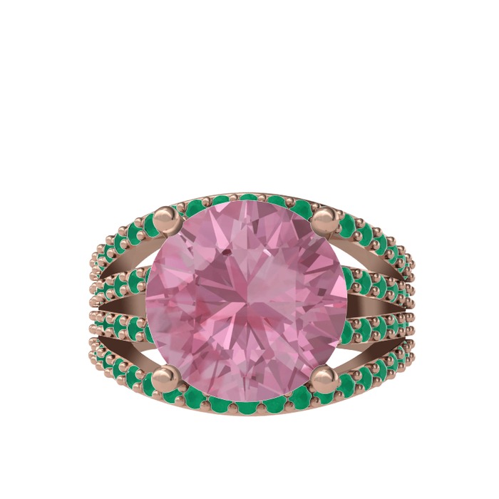 Pembe kuvars ve kök zümrüt 18 ayar rose altın yüzük