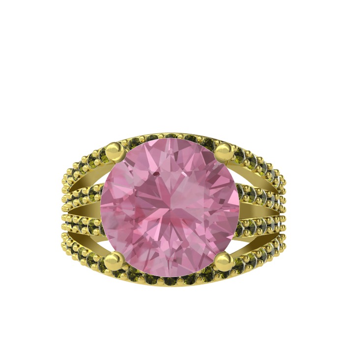 Pembe kuvars ve peridot 14 ayar altın yüzük