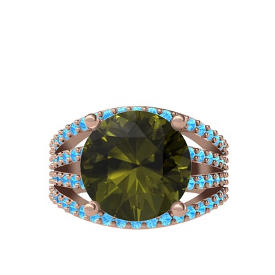 Peridot ve akuamarin 925 ayar rose altın kaplama gümüş yüzük