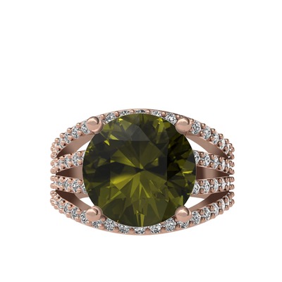 Peridot ve beyaz zirkon 925 ayar rose altın kaplama gümüş yüzük