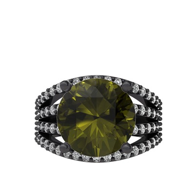 Peridot ve beyaz zirkon 925 ayar siyah rodyum kaplama gümüş yüzük