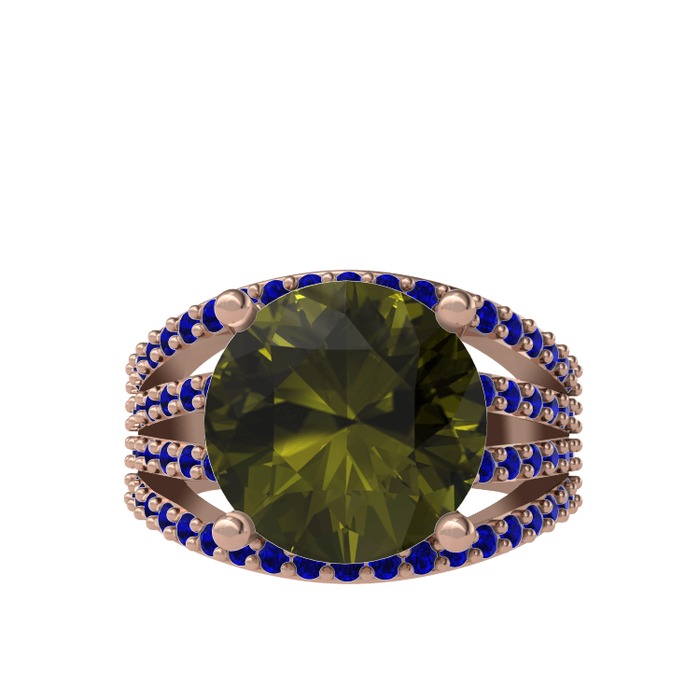 Peridot ve lab safir 925 ayar rose altın kaplama gümüş yüzük