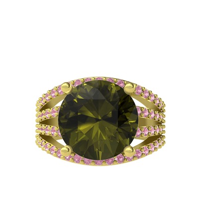 Peridot ve pembe kuvars 14 ayar altın yüzük
