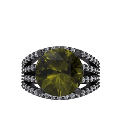 Peridot ve pırlanta 925 ayar siyah rodyum kaplama gümüş yüzük (0.93 karat)