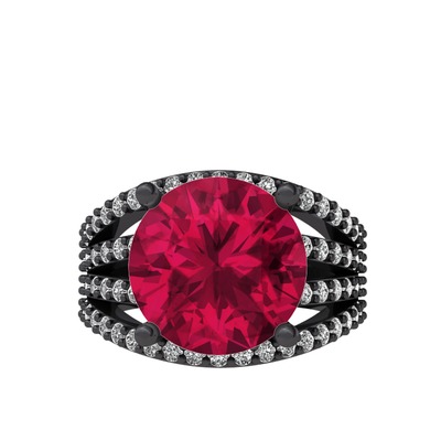 Rodolit garnet ve beyaz zirkon 925 ayar siyah rodyum kaplama gümüş yüzük