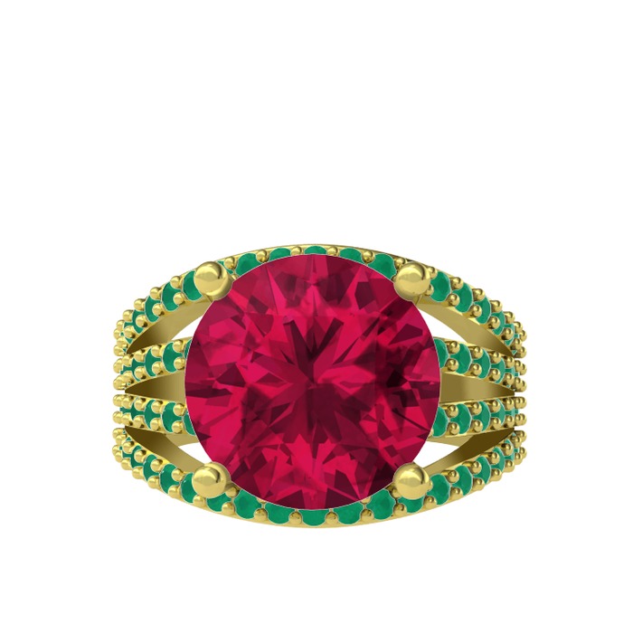 Rodolit garnet ve kök zümrüt 14 ayar altın yüzük