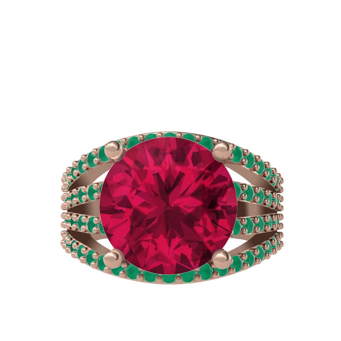 Rodolit garnet ve kök zümrüt 14 ayar rose altın yüzük