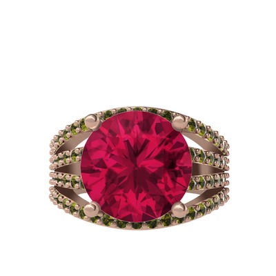 Rodolit garnet ve peridot 18 ayar rose altın yüzük