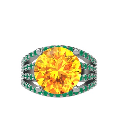 Sitrin ve kök zümrüt 18 ayar beyaz altın yüzük