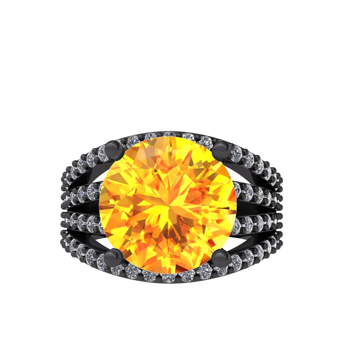 Sitrin ve pırlanta 925 ayar siyah rodyum kaplama gümüş yüzük (0.93 karat)