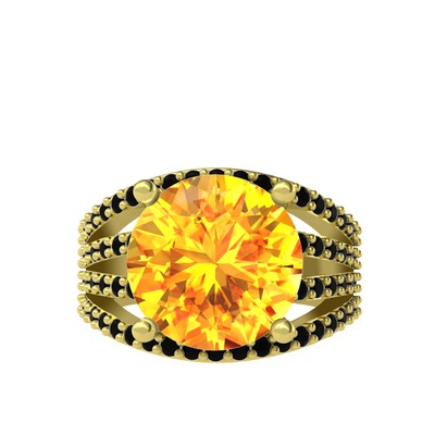Sitrin ve siyah zirkon 18 ayar altın yüzük