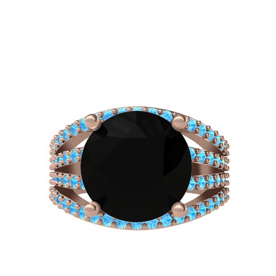 Siyah zirkon ve akuamarin 8 ayar rose altın yüzük