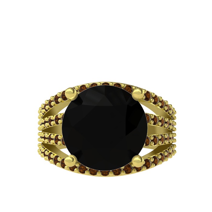 Siyah zirkon ve dumanlı kuvars 14 ayar altın yüzük