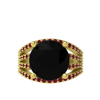 Siyah zirkon ve kök yakut 925 ayar altın kaplama gümüş yüzük