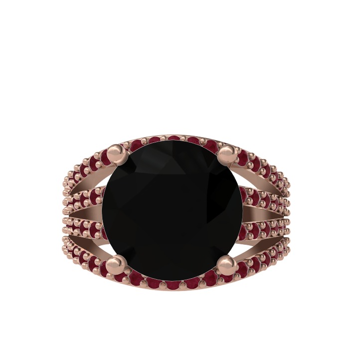 Siyah zirkon ve kök yakut 925 ayar rose altın kaplama gümüş yüzük
