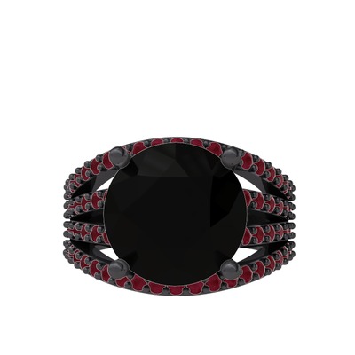 Siyah zirkon ve kök yakut 925 ayar siyah rodyum kaplama gümüş yüzük