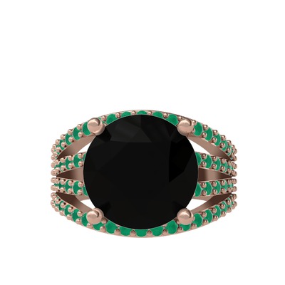 Siyah zirkon ve kök zümrüt 8 ayar rose altın yüzük