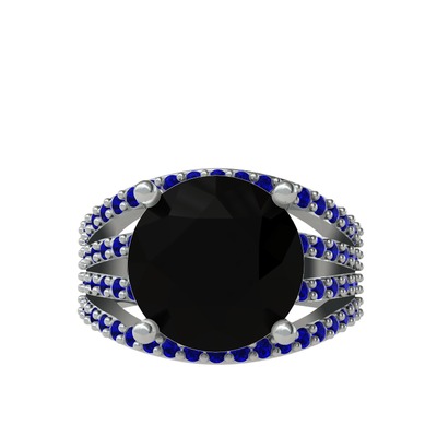 Siyah zirkon ve lab safir 18 ayar beyaz altın yüzük