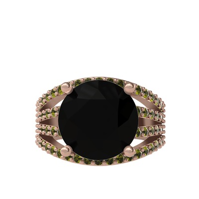 Siyah zirkon ve peridot 18 ayar rose altın yüzük