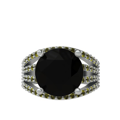 Siyah zirkon ve peridot 8 ayar beyaz altın yüzük
