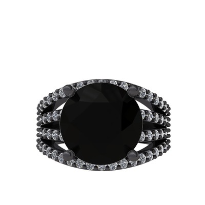 Siyah zirkon ve pırlanta 925 ayar siyah rodyum kaplama gümüş yüzük (0.93 karat)