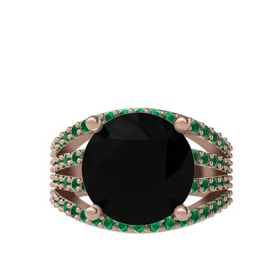 Siyah zirkon ve yeşil kuvars 14 ayar rose altın yüzük