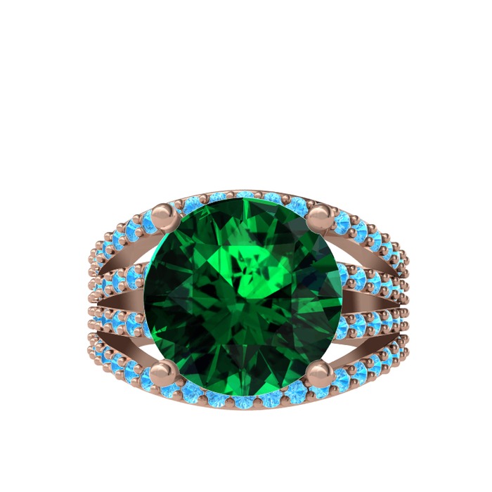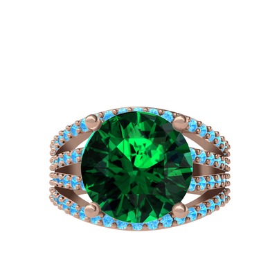 Yeşil kuvars ve akuamarin 14 ayar rose altın yüzük