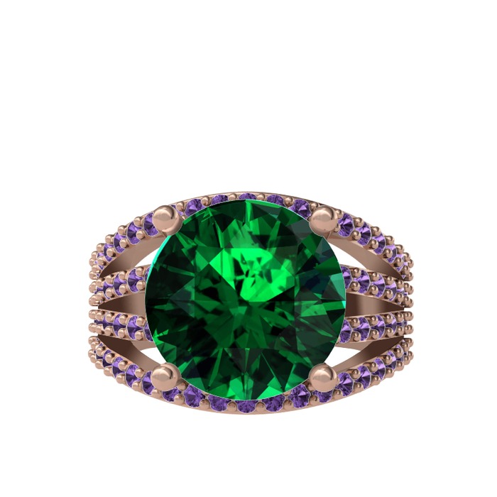 Yeşil kuvars ve ametist 14 ayar rose altın yüzük