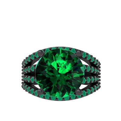 Yeşil kuvars ve kök zümrüt 925 ayar siyah rodyum kaplama gümüş yüzük