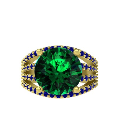 Yeşil kuvars ve lab safir 925 ayar altın kaplama gümüş yüzük