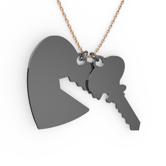 925 ayar siyah rodyum kaplama gümüş kolye (40 cm rose altın rolo zincir)