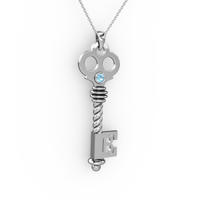 Akuamarin 18 ayar beyaz altın kolye (40 cm beyaz altın rolo zincir)