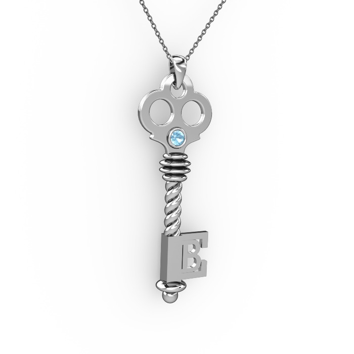 Akuamarin 18 ayar beyaz altın kolye (40 cm gümüş rolo zincir)