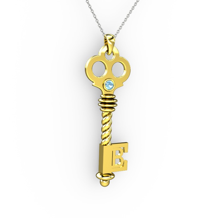 Akuamarin 925 ayar altın kaplama gümüş kolye (40 cm beyaz altın rolo zincir)