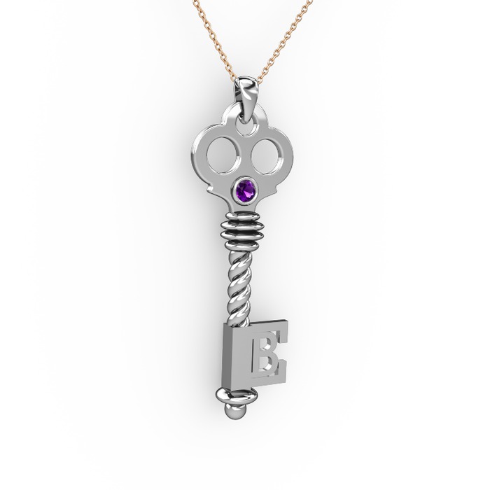 Ametist 18 ayar beyaz altın kolye (40 cm rose altın rolo zincir)